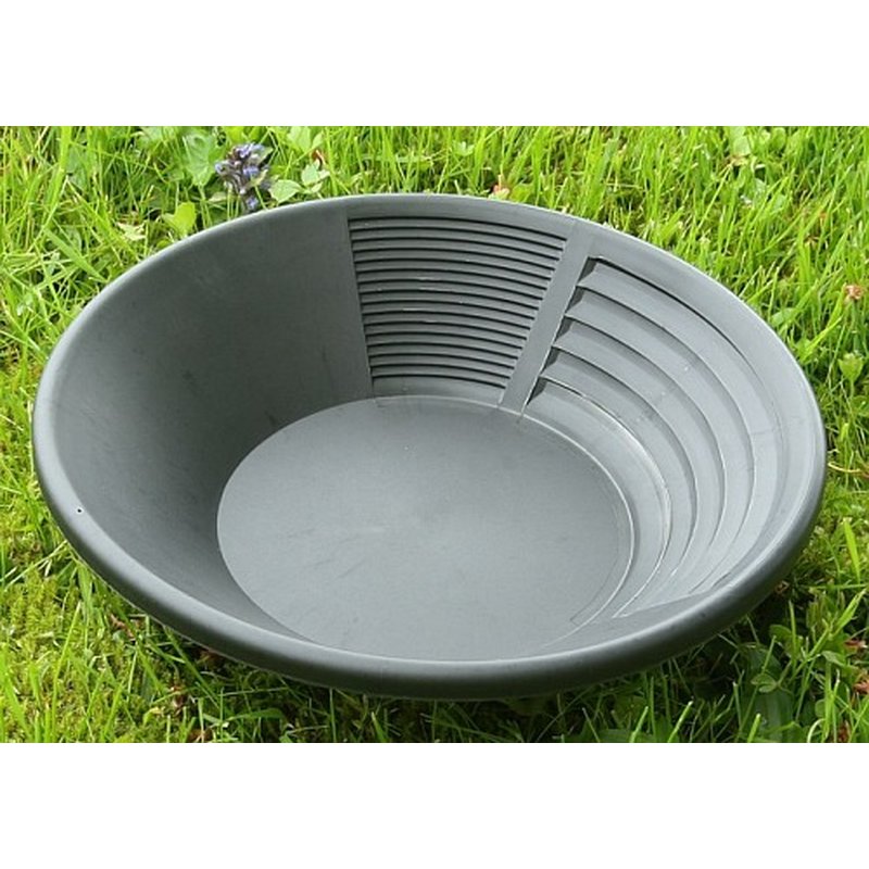 Estwing's Goldwaschpfanne aus Kunststoff hat Rillen zur gründlichen Trennung und am Rand ein Loch zum Anbringen einer Halteschlaufe. Die Schürfpfanne ist leicht, chemikalienbeständig und -selbstverständlich- rostfrei. Estwing Artikelnr. BP-10